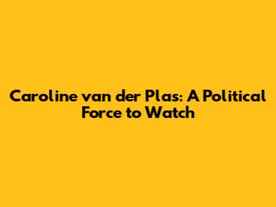 Caroline Van Der Plas: A Political Force To Watch