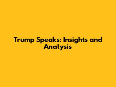 Trump Speaks: Insights And Analysis
